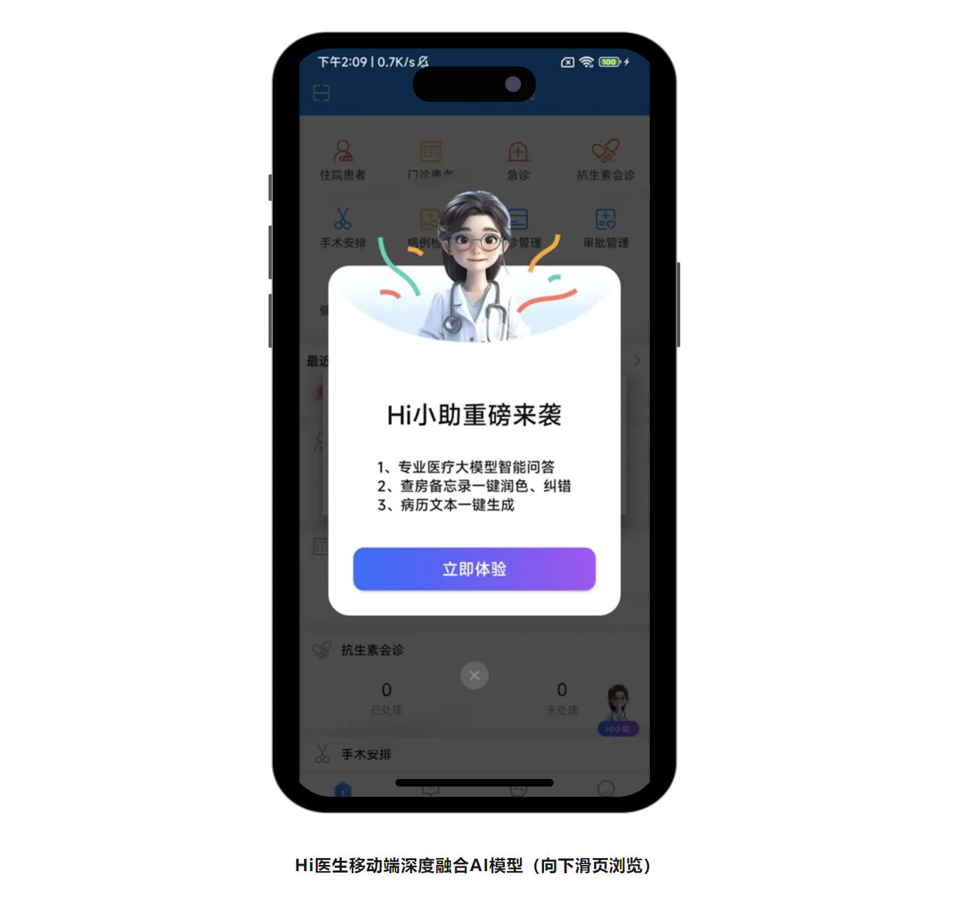 得益于和仁科技多平臺生態,我們在移動端也已進行了超過 30 項 AI 相關功能的版本更新,廣受用戶好評。醫生語音備忘錄經過大語言模型實時轉化為標準化臨床文檔,與 HIS 系統無縫對接;基于多模態大模型,通過拍攝藥盒即可觸發藥品智能識別和處方生成系統,實現自動開藥。在互聯網診療領域,我們借助語言潤色、電子病歷自動生成等模塊的協同,顯著提升線上問診效率和用戶體驗。從2025年1月起,我們已在移動端深度集成系列大語言模型能力,突破高頻輕量級場景的智能化。通過在移動端的探索,針對高頻使用場景進行優化,為 HIS 端的體驗升級提供了數據支持與實踐參考,推動醫療AI的持續進化。