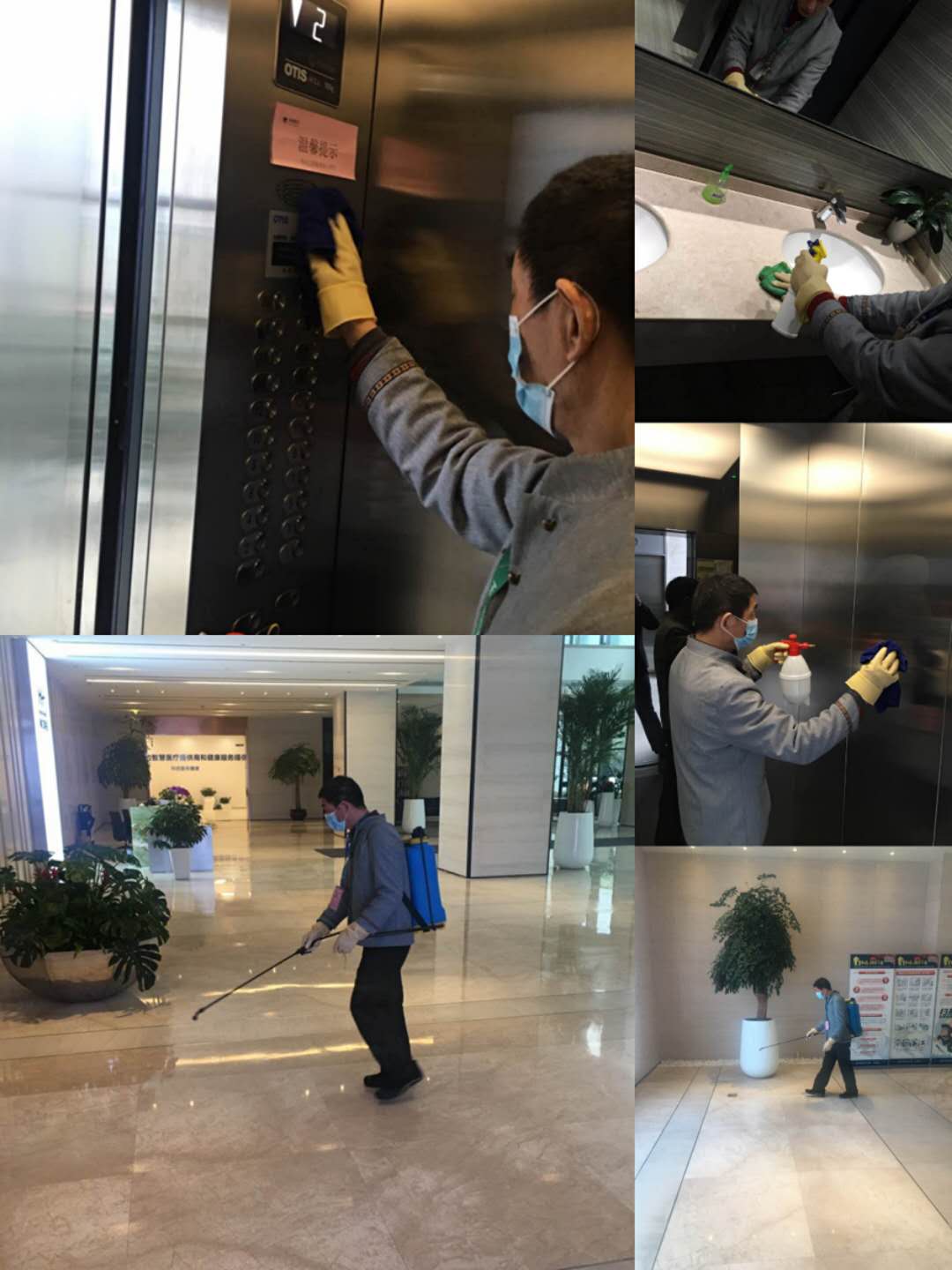 復工期間,和仁科技大廈公共區域(大堂、展廳、各樓層茶水間、樓道、地下車庫、電梯間等)進行噴灑消毒。針對門把手、開關、電梯按鍵等頻繁交叉使用區域加強消毒頻次。工作組建立全員晨檢、夕查機制篩查體溫,為員工配備醫用口罩、配置消毒液等公共應急物資,并設立醫用口罩集中回收點等,所有服務人員將全天佩戴口罩工作,建立疫情防控消殺管理日志。