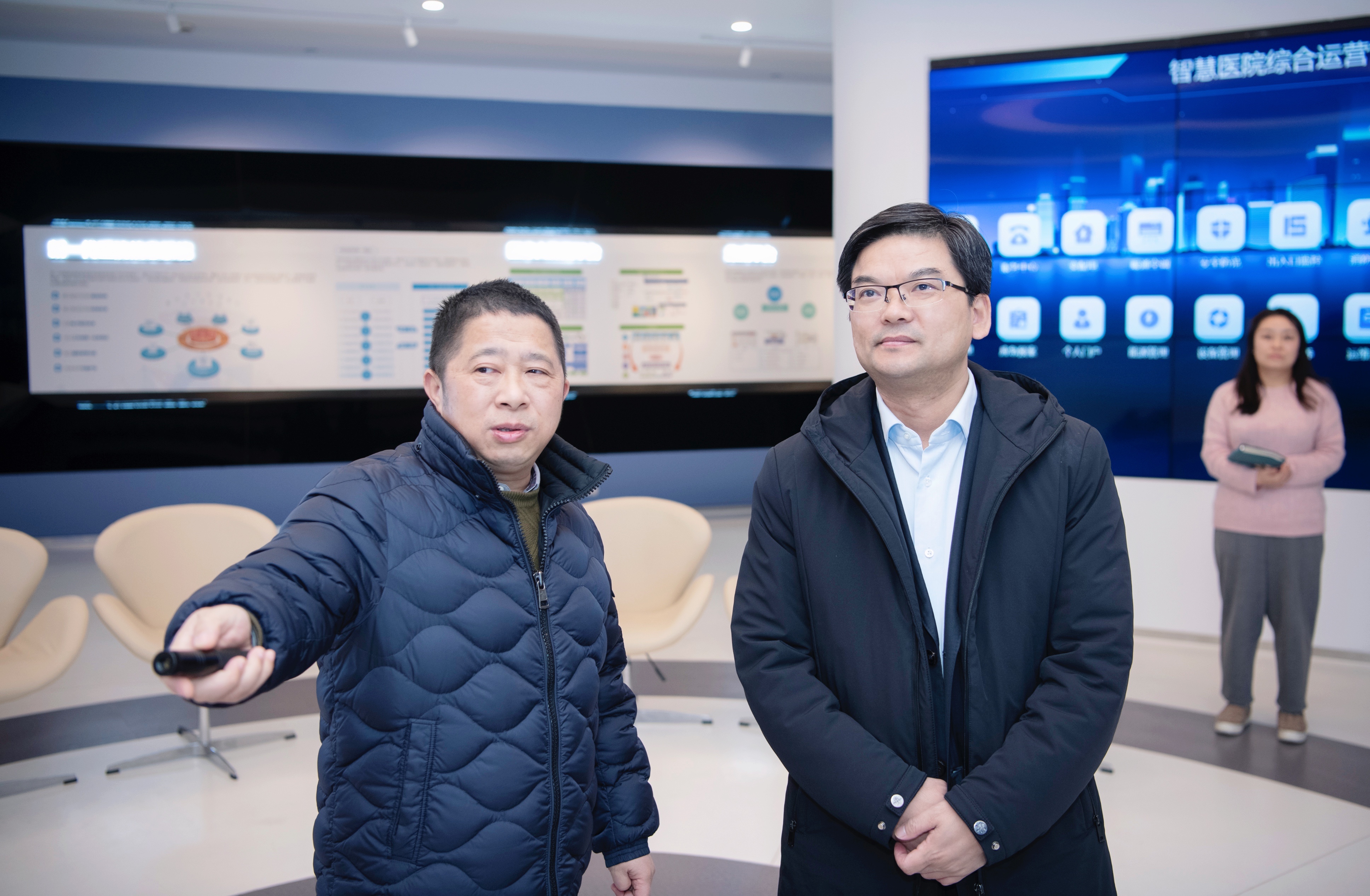 李志龍區(qū)長一行參觀了和仁科技智慧醫(yī)療展廳,聽取了企業(yè)的發(fā)展歷程、戰(zhàn)略規(guī)劃及企業(yè)在智慧醫(yī)療領(lǐng)域取得的成績,了解了“城市大腦·舒心就醫(yī)”的主要功能、實(shí)際效果等。