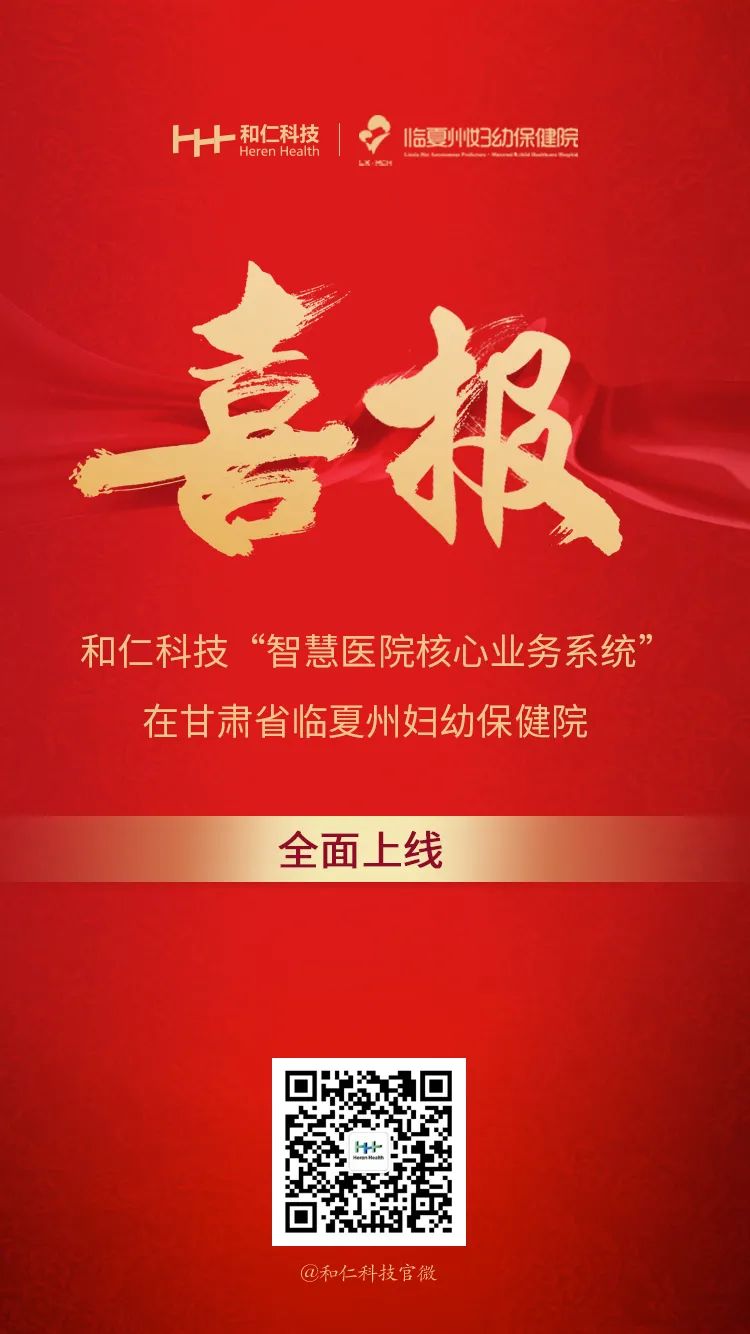 浙江和仁科技股份有限公司(以下簡稱“和仁科技”)承建的甘肅省臨夏州婦幼保健院(以下簡稱“院方”)“智慧醫院核心業務系統”于1月18號進行試運行,1月23日零點順利上線,現場系統運行穩定,流程順暢。