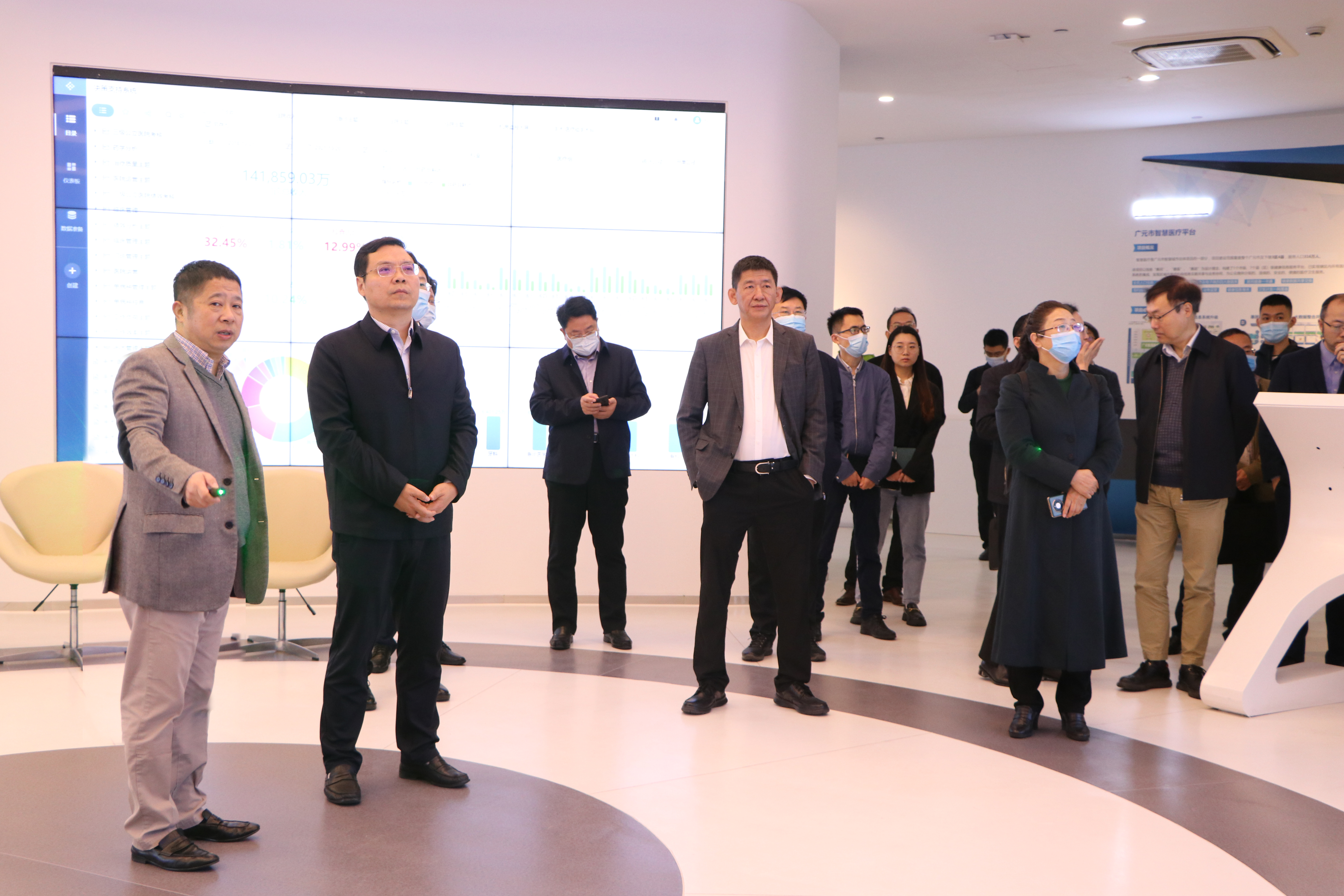 市委副書記、市長李躍勇一行在董事長楊一兵的陪同下參觀了和仁科技智慧醫療展廳并舉行了座談,聽取了公司的發展歷程、戰略規劃,了解了公司的核心產品及重點案例。